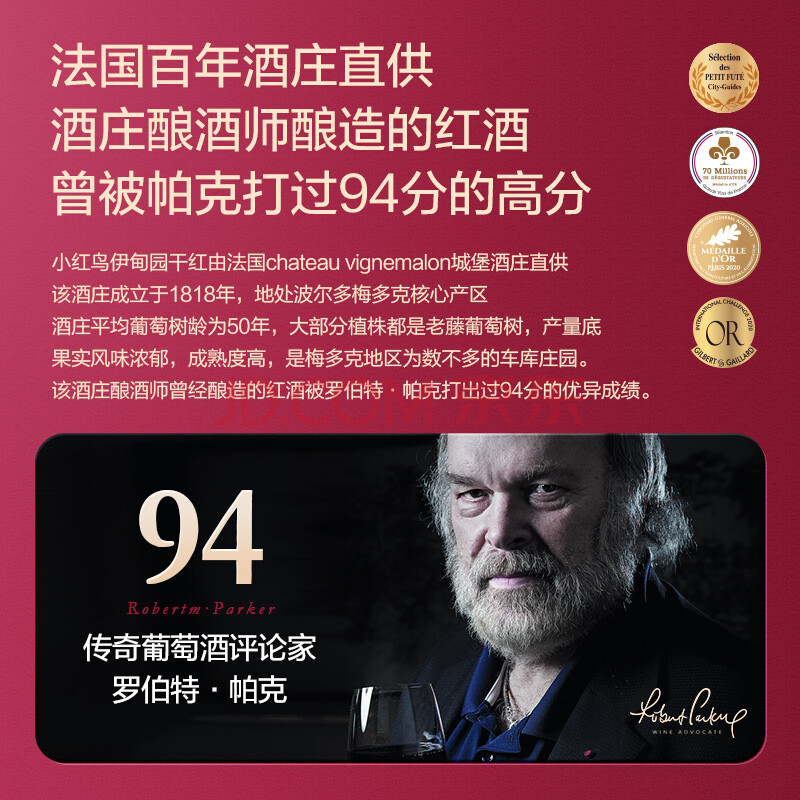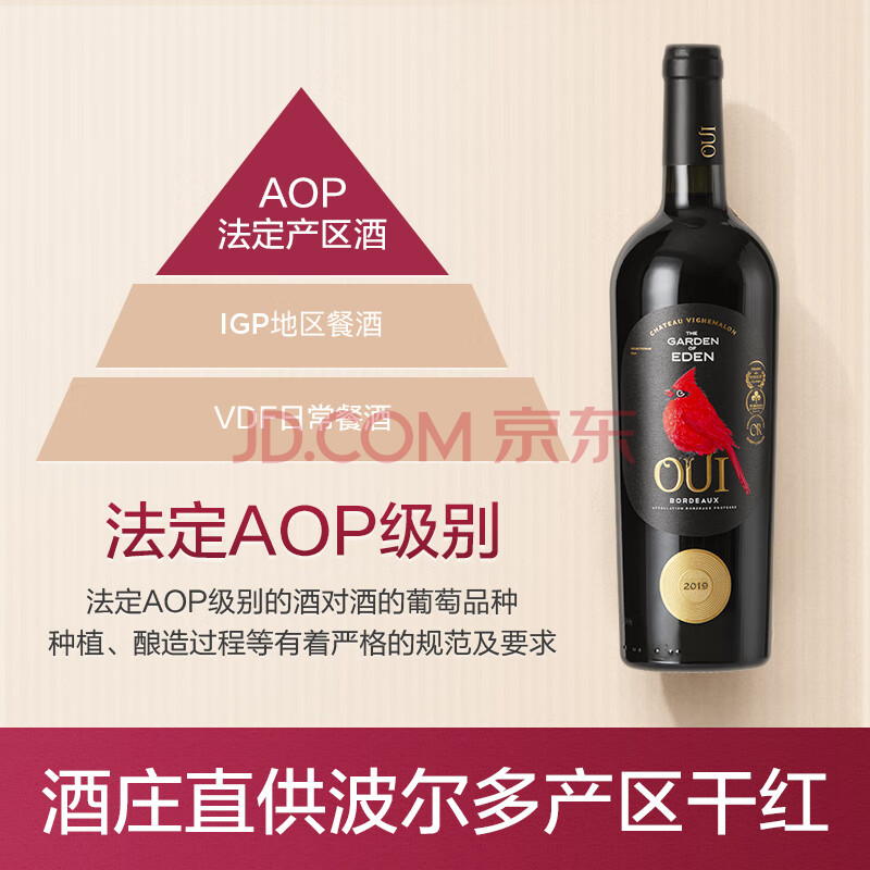 商品相册:卡伯纳法国原瓶进口伊甸园波尔多AOC干红葡萄酒750ml*6年货红酒木盒送礼第