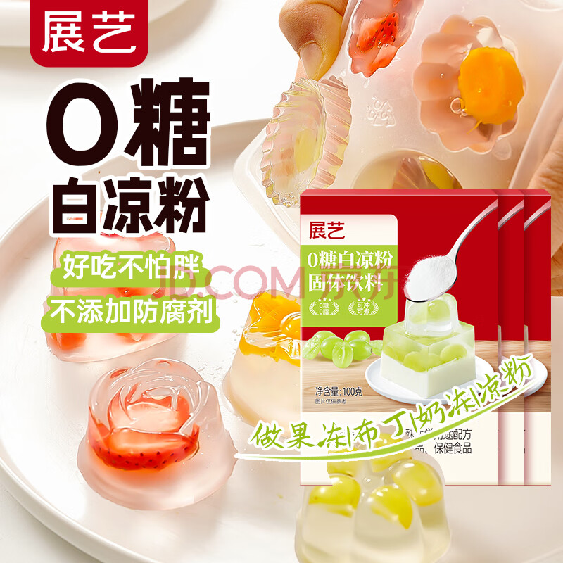 商品相册:展艺烘焙原料 零糖白凉粉 仙草冰粉 清补凉魔芋凉虾儿童果冻粉 100g*3第
