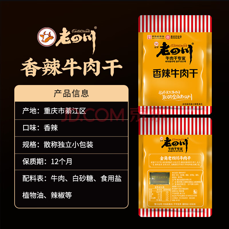 商品相册:老四川 香辣牛肉干250g 散装独立小包 四川特产金角中华老字号第