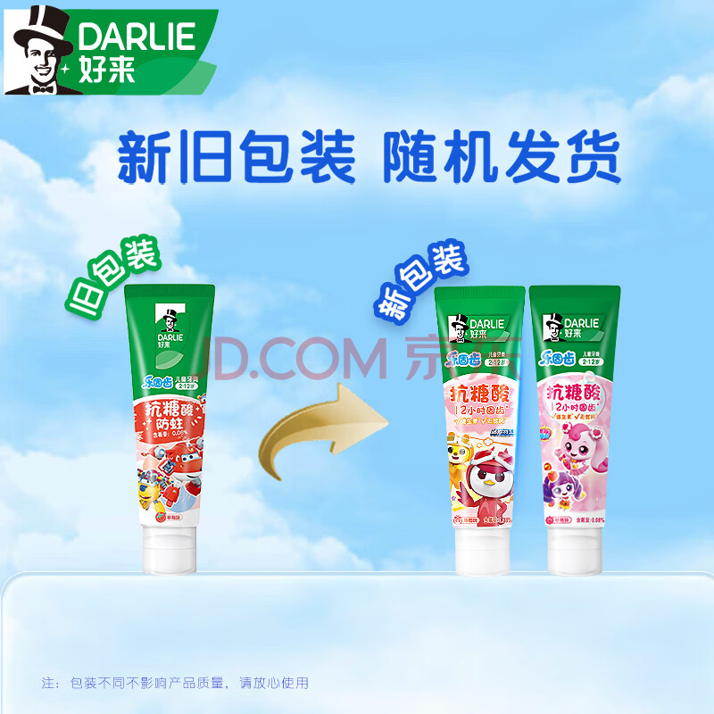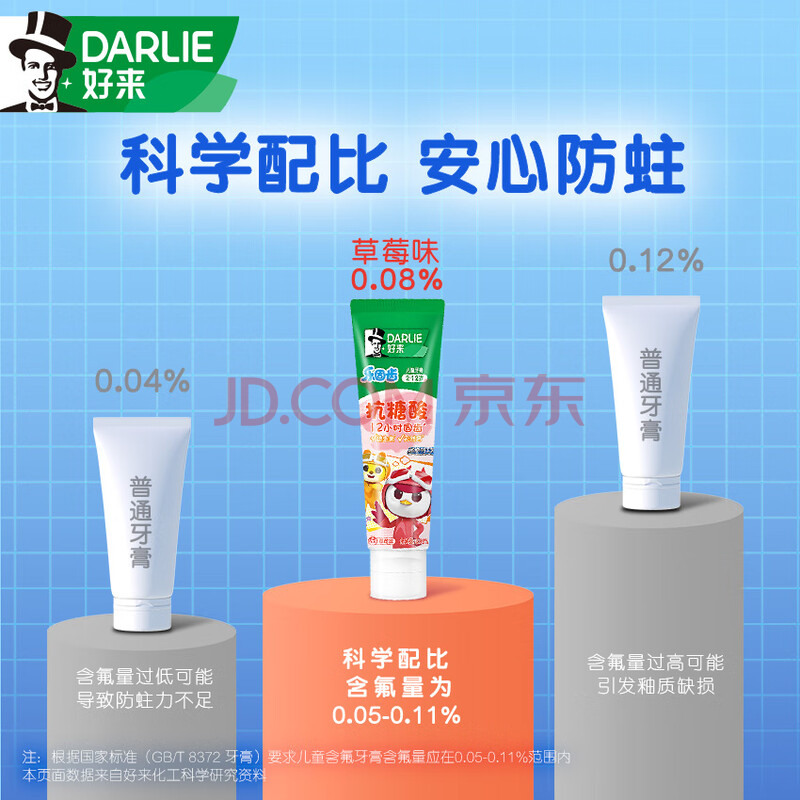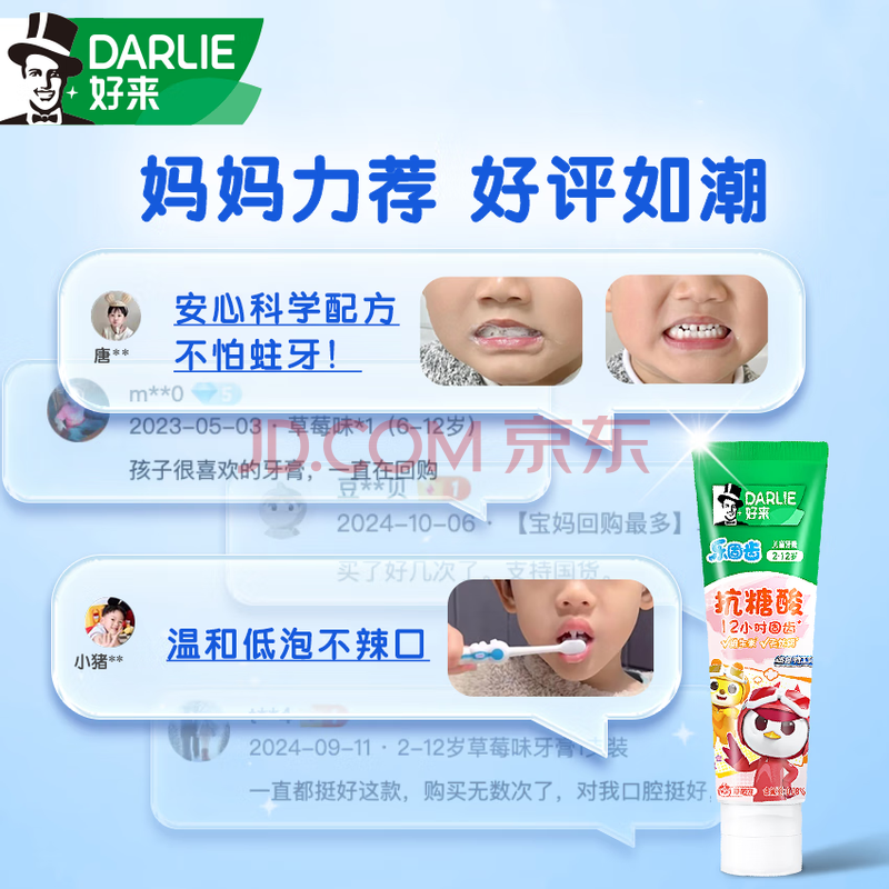 商品相册:DARLIE好来(原黑人)乐固齿儿童牙膏2-3-6-12岁草莓味60g防蛀抗糖第