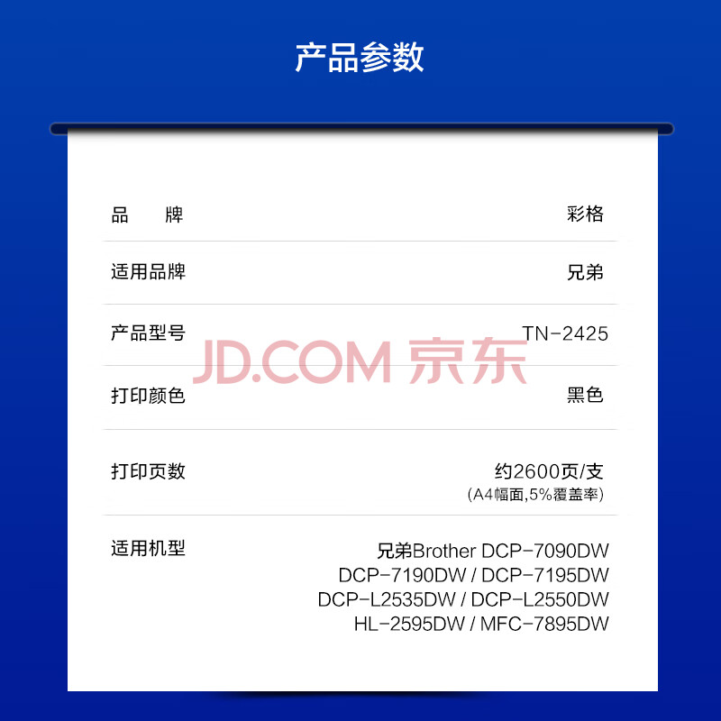 商品相册:彩格TN2425碳粉适用兄弟DCP-7190DW 7090DW打印机墨粉盒 L2550dw L2535dw碳粉盒7195dw 7895dw打印机硒鼓碳粉6支第