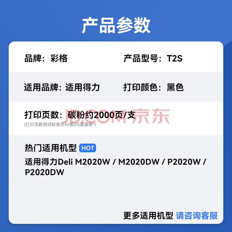 商品相册:彩格T2S碳粉6支装 适用得力M2020DW M2020W打印机墨粉盒P2020DW P2020W打印机硒鼓墨粉碳粉第