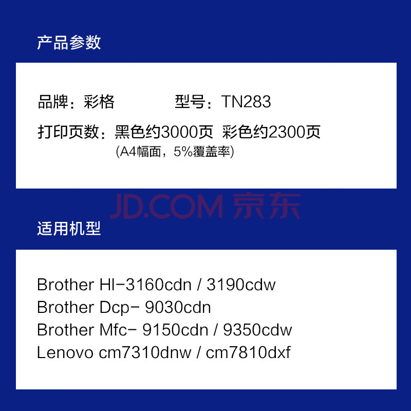 商品相册:彩格TN283适用兄弟9030cdn粉盒3160cdw硒鼓TN287墨盒9150cdn 9350cdw 3190cdw联想cm7310dnw打印机cm7810dxf第