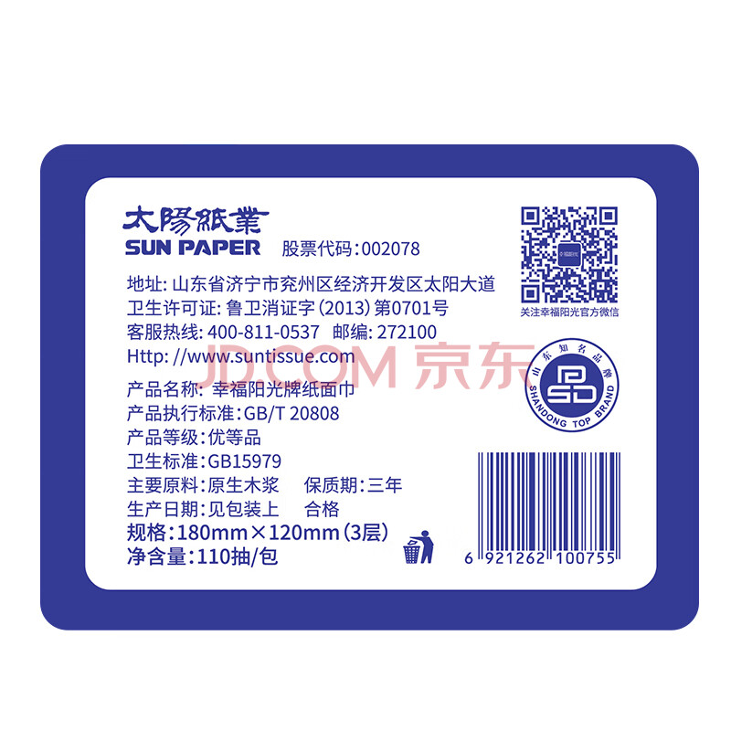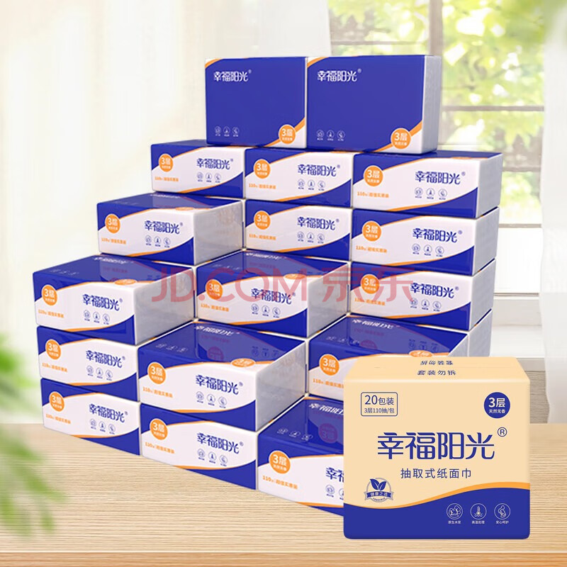 商品相册:幸福阳光抽纸 经典系列 3层110抽*20包餐巾面巾擦手纸巾第
