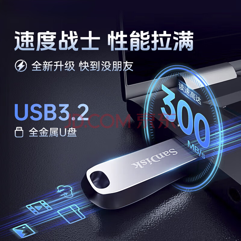 商品相册:闪迪(SanDisk)64GB USB3.2 U盘 CZ74 读速高达300MB/s 金属高速u盘 安全加密 学习办公投标大容量优盘第