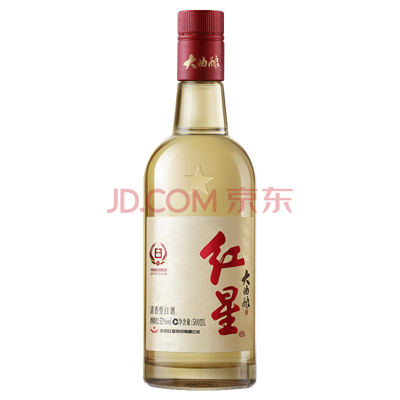 商品相册:红星二锅头 大曲酿 清香型白酒 52度500ml单瓶装 纯粮 口粮酒第