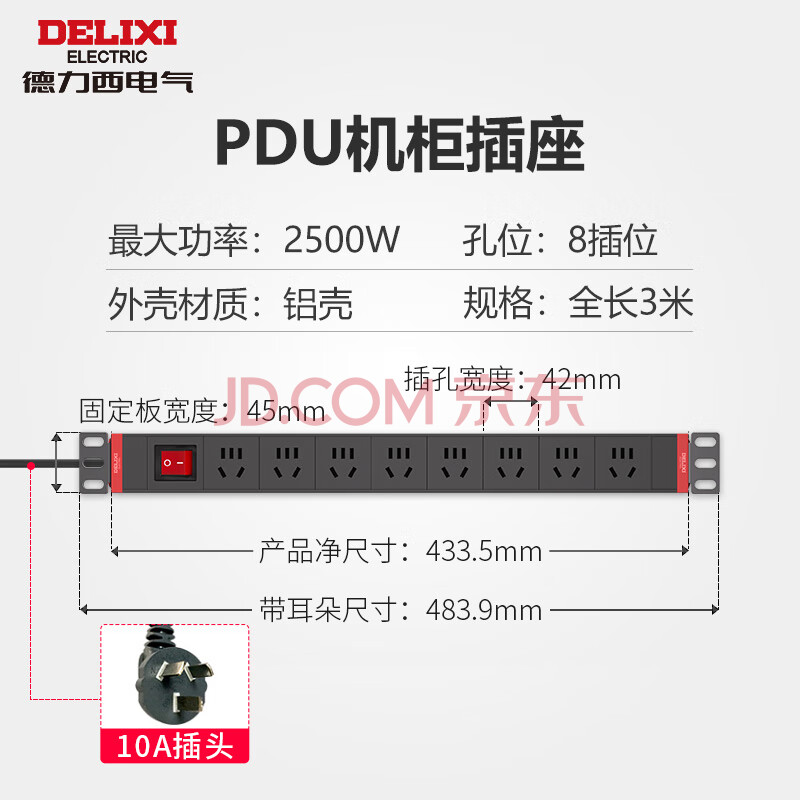 商品相册:德力西(DELIXI)PDU机柜桌面电竞插座/插线板/插排/排插/接线板/拖线板 8位总控开关全长3米第