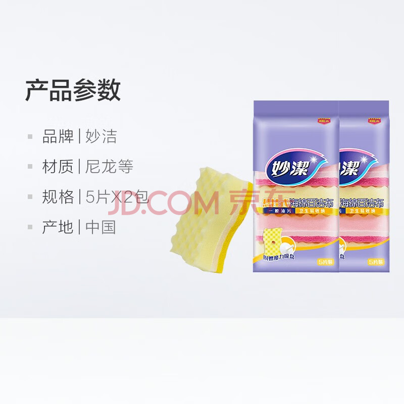 商品相册:妙洁悬挂式海绵百洁布5片装*2袋 带悬挂吸盘(在包装里面)厨房洗碗神器第