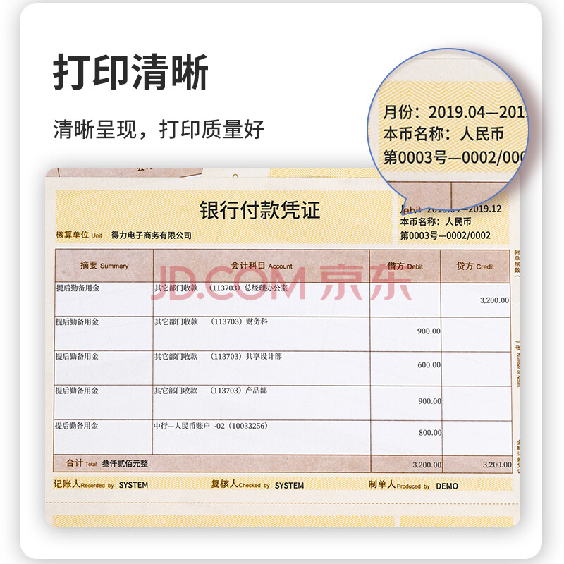 商品相册:得力(deli)空白凭证A4金额记账凭证激光打印纸 KPJ101 财务办公用品 用友软件T3/T6/U8适用 2000张 黄色22002第