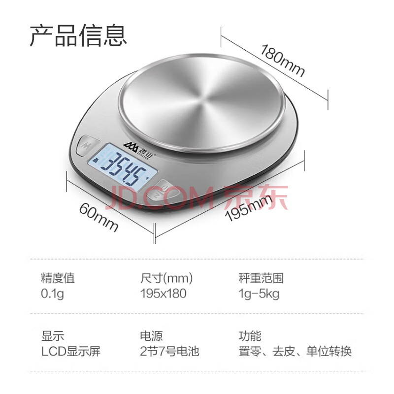 商品相册:香山电子秤厨房秤 克称咖啡秤 食物烘焙秤 LCD背光大屏 0.1g高精度第