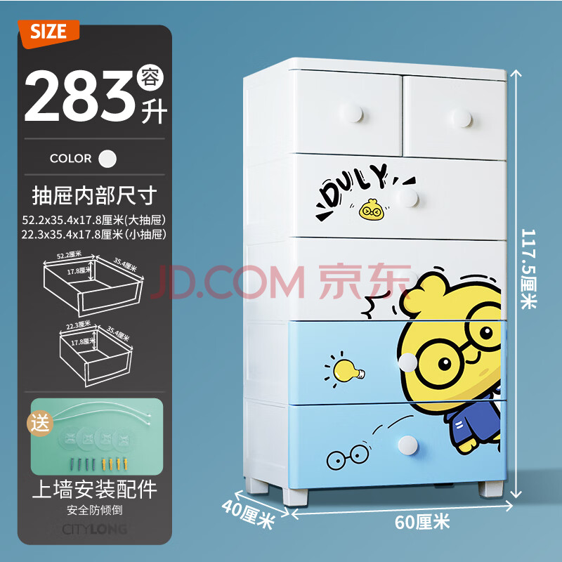商品相册:禧天龙儿童收纳柜客厅储物柜简易衣柜五斗柜抽屉式置物柜整理柜 5层雏鸟第