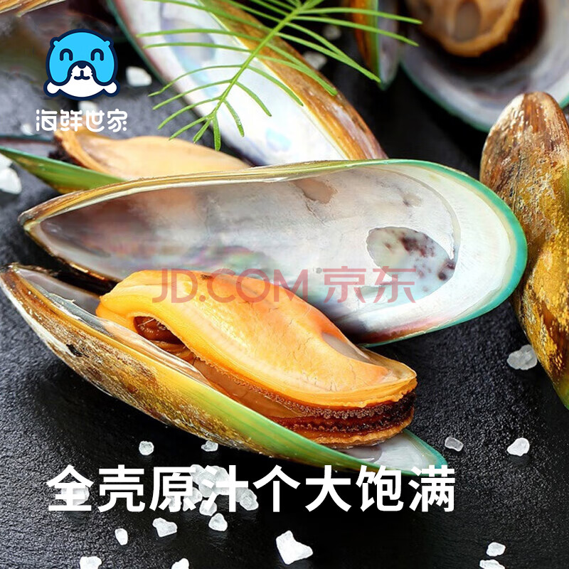 商品相册:海鲜世家新西兰熟冻原汁全壳青口贝净含量1kg 21-26只/袋原装进口海鲜贝类第