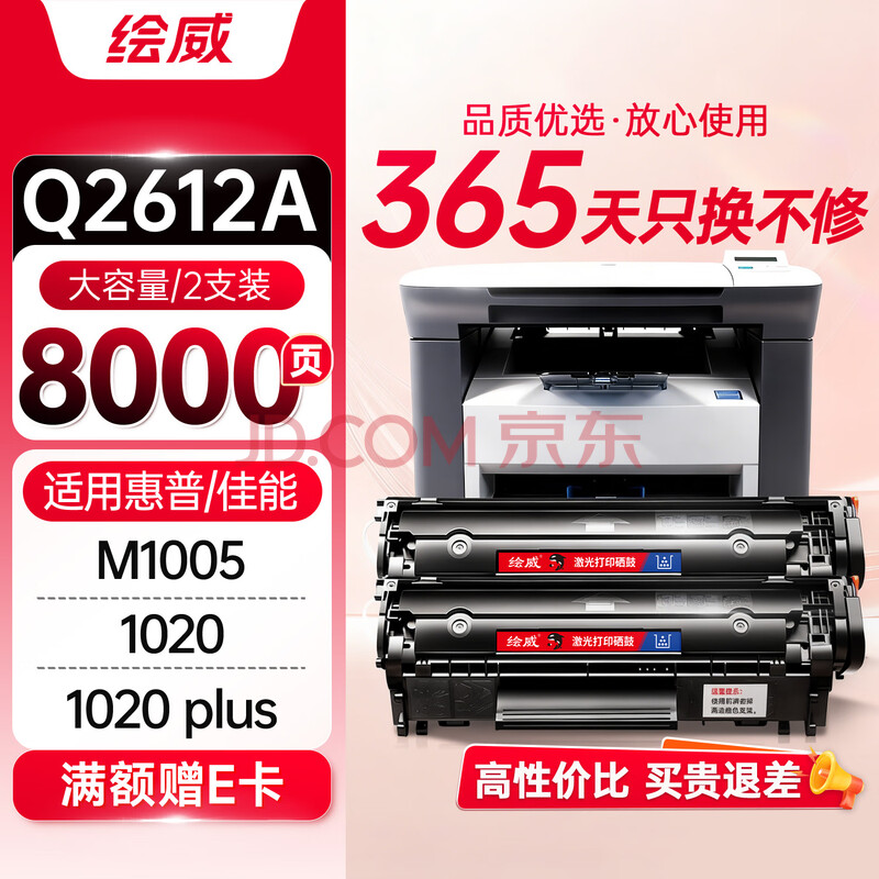 商品相册:绘威适用惠普m1005硒鼓1020plus硒鼓Q2612A 12A 1020 1010 1018 3050 3015佳能LBP2900+打印机硒鼓墨盒大容量2支第