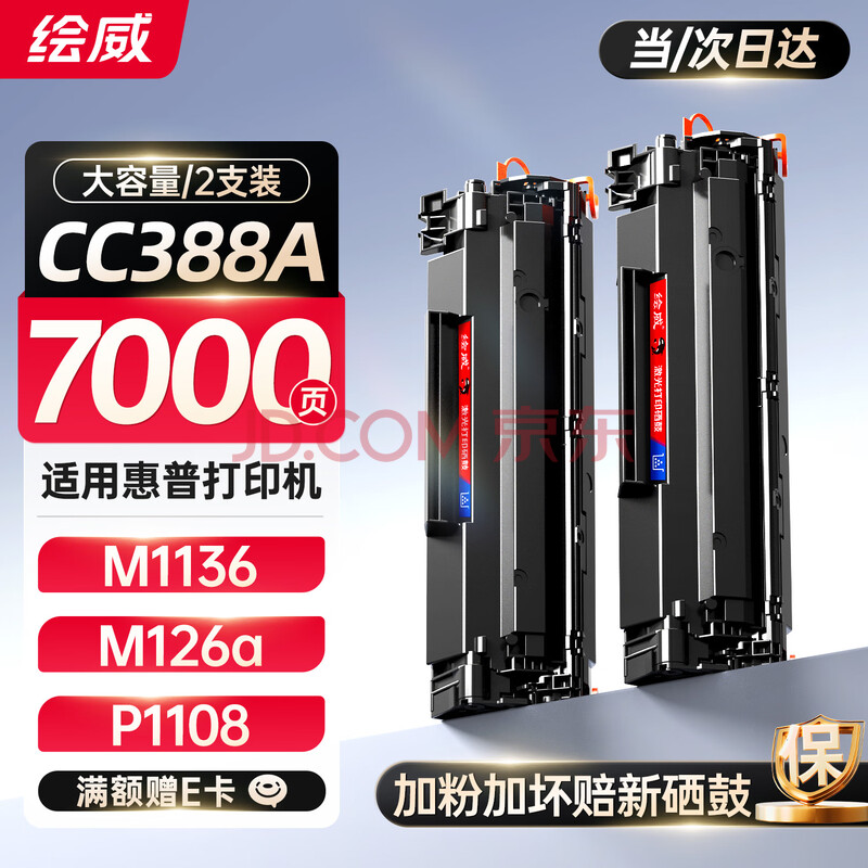 商品相册:绘威CC388A 88A大容量硒鼓适用惠普HP M1136 mfp 388a墨盒P1106 P1108 plus M126a/nw M1213nf 1216nfh打印机粉盒第