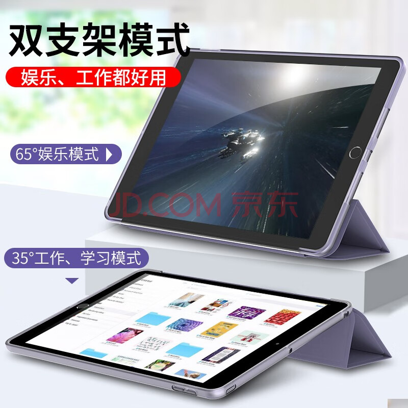 商品相册:京东京造 苹果iPad2018保护套9.7英寸2017平板电脑壳iPad 5/6休眠套 a1822/a1893防摔轻薄套 薰衣草灰第