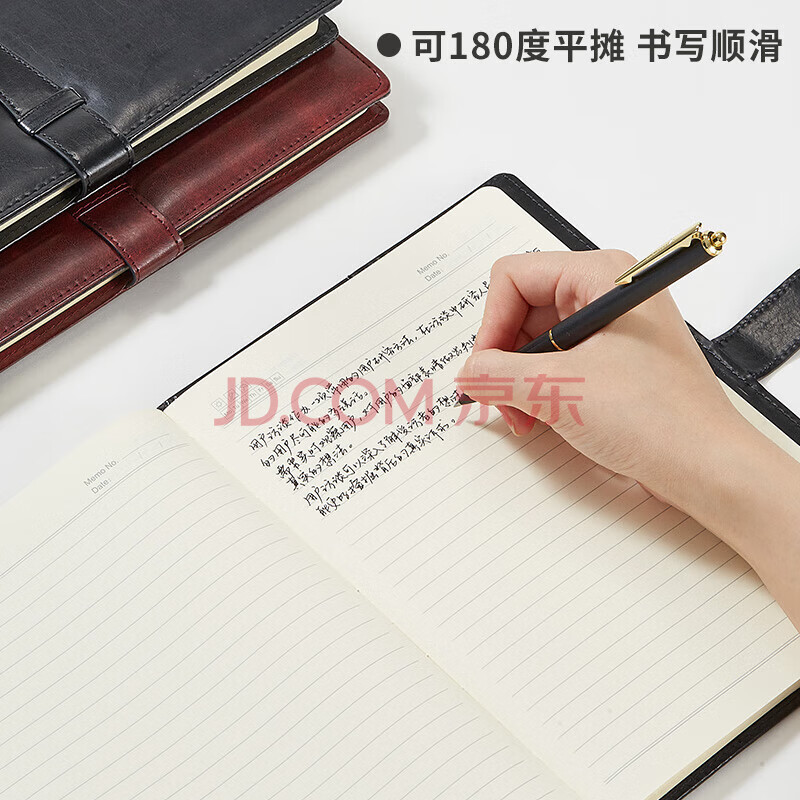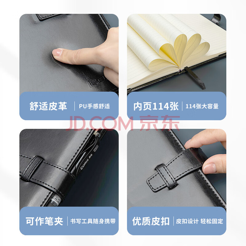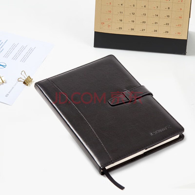 商品相册:齐心(COMIX)插扣式皮面笔记本子/记事本/日记本/会议记录本定制 25K/114张 黑色 C5808第