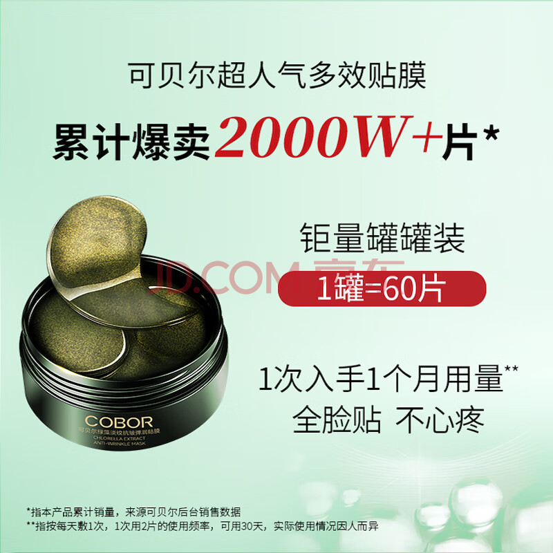 商品相册:可贝尔(COBOR)绿藻淡纹抗皱弹润贴膜60片/盒提拉紧致抗皱淡纹眼膜男女礼物第