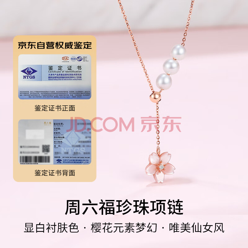 商品相册:周六福18K金珍珠项链女樱花母贝彩金项链生日礼物X067962约40+5cm第1张/共6