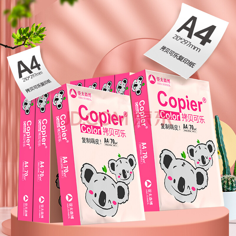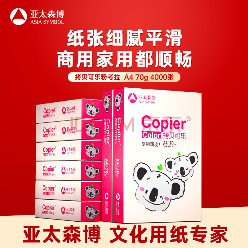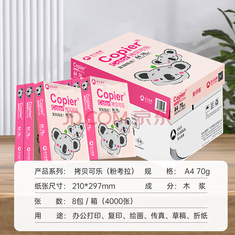 商品相册:亚太森博拷贝可乐(粉考拉) A4纸 70g 500张*8包 双面打印复印纸草稿纸4000张整箱【造纸源头厂牌】第
