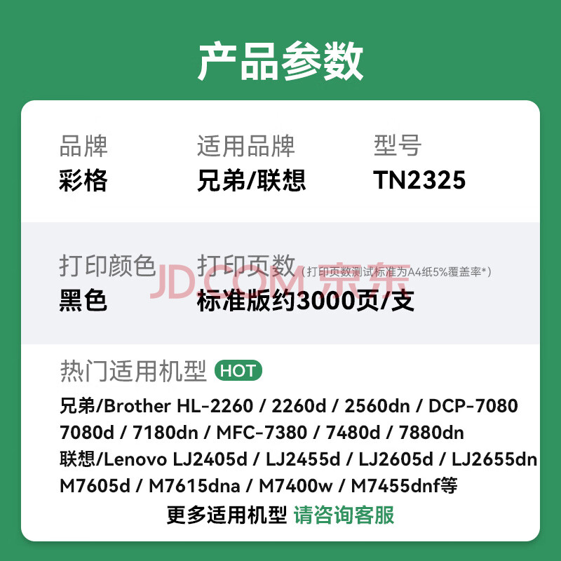 商品相册:彩格TN2325粉盒适用兄弟打印机墨盒MFC-7380 DCP-7080D DCP-7180DN HL-2260D TN-2312打印机硒鼓墨粉盒4支第
