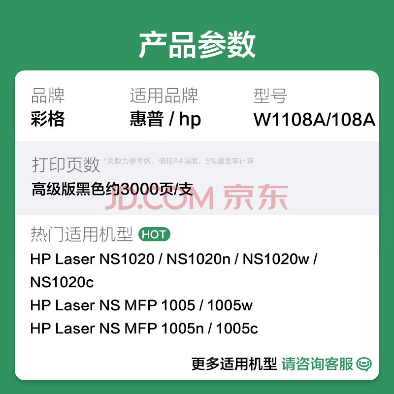 商品相册:彩格108a粉盒适用惠普NS MFP 1005w硒鼓hp 108a闪充粉盒NS 1020c 1020n NS MFP 1005 1005c w1108a智能闪充墨粉盒第