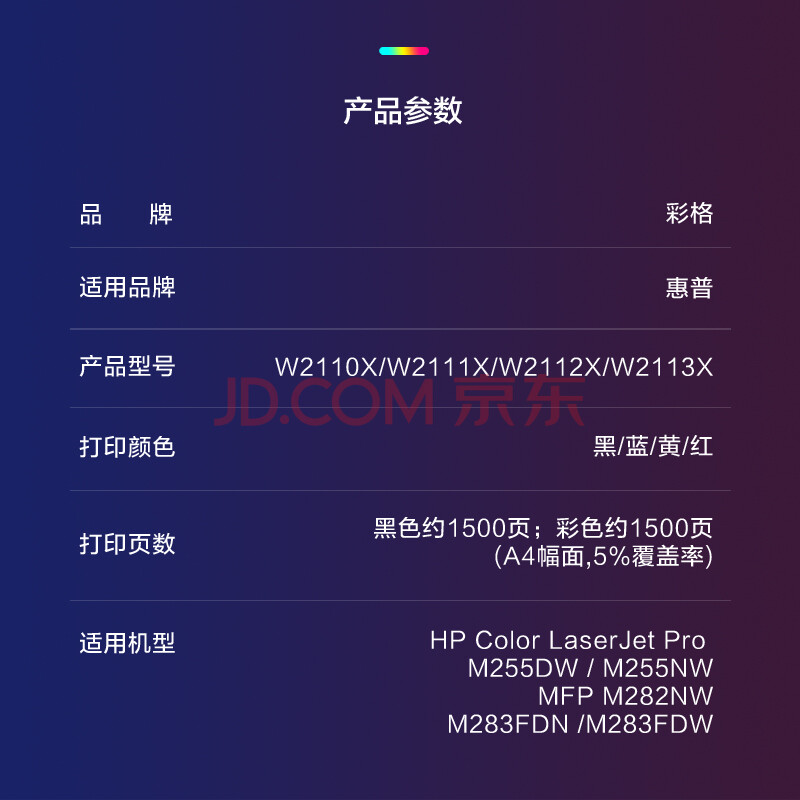 商品相册:彩格W2110X黑色碳粉 适用惠普HP Color LaserJet Pro M255DW M255NW MFP M282NW M283FDN M283FDW墨粉第