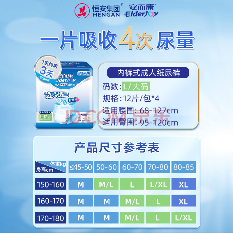商品相册:安而康(Elderjoy)超值装基础型成人拉拉裤L48片臀围95-120cm内裤式纸尿裤出行安心第