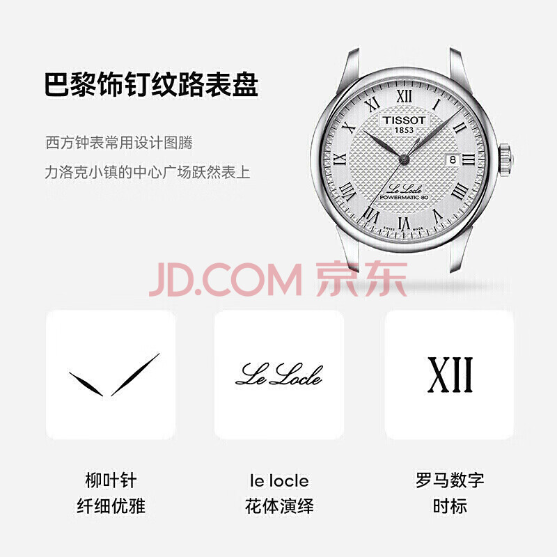 商品相册:天梭(TISSOT)手表 力洛克系列男表 瑞士自动机械男士钢带腕表商务表生日礼物第1张/共6