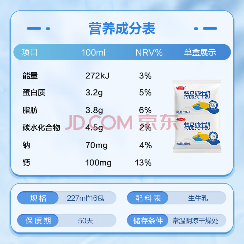 商品相册:三元特品纯牛奶整箱227ml*16包 枕包 营养早餐伴侣 整箱送礼第