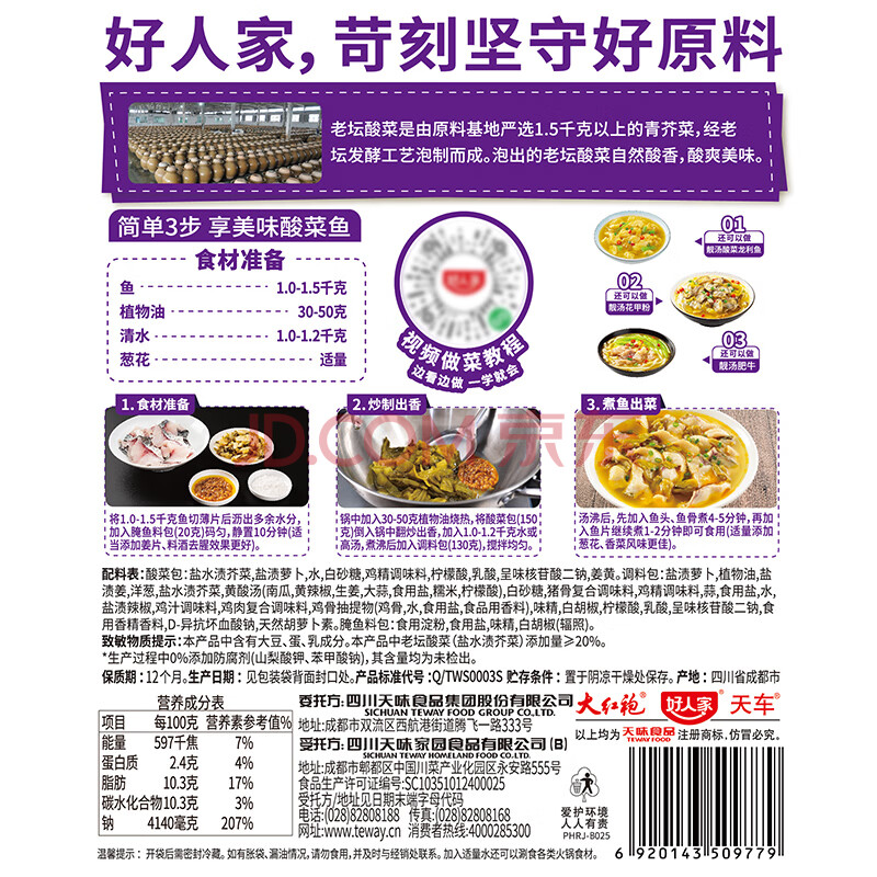 商品相册:好人家靓汤酸菜鱼调料300g 【0添加防腐剂】猪骨白汤熬制料包可做3斤鱼第