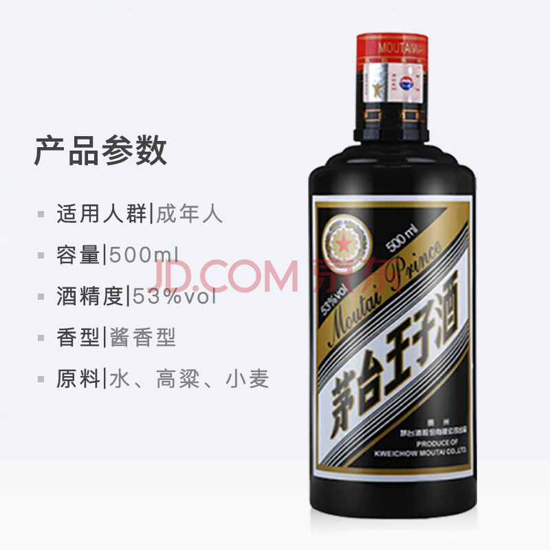商品相册:茅台(MOUTAI)王子酒 黑金王子 酱香型白酒 53度 500ml*6 整箱装第