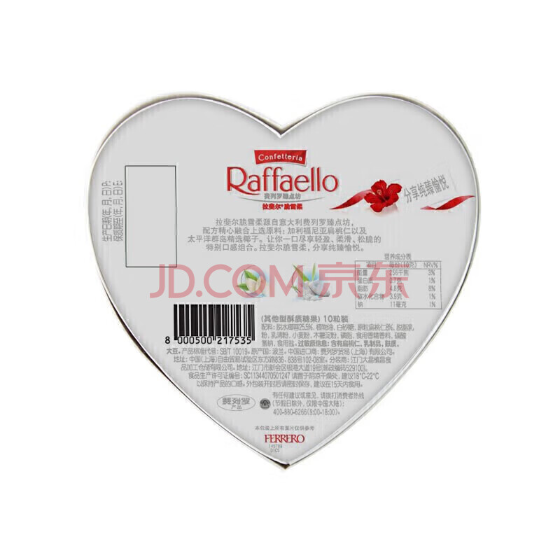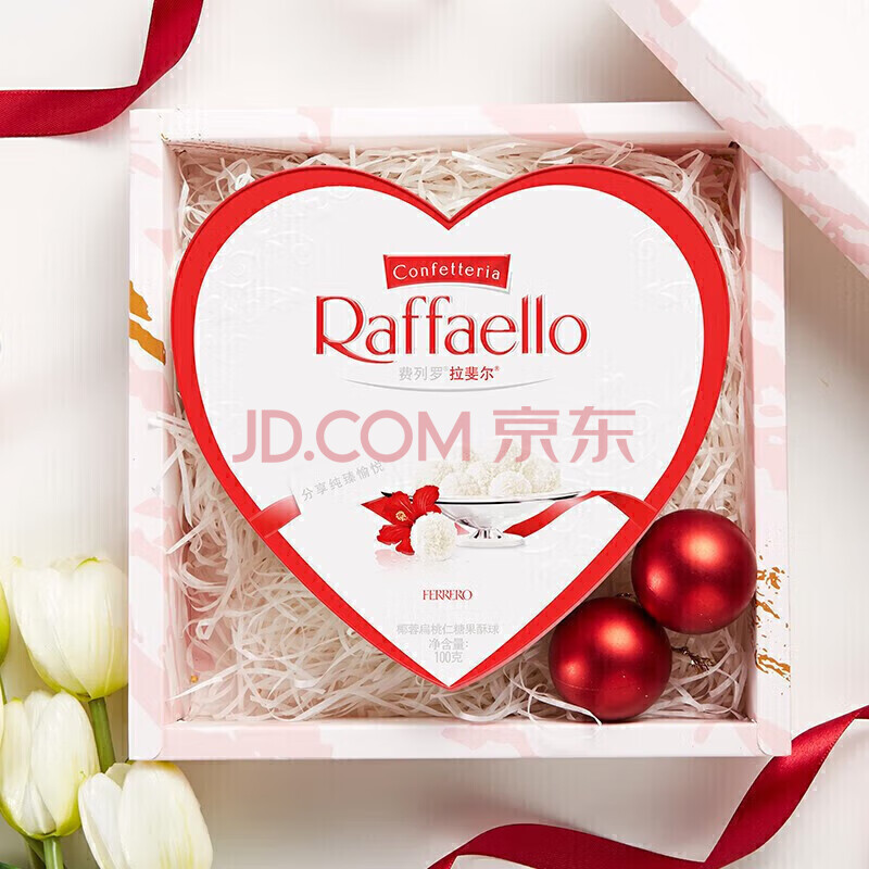 商品相册:费列罗 拉斐尔脆雪柔酥球 10粒100g 心形礼盒 零食 糖果 生日礼物第