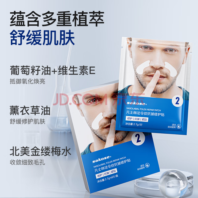 商品相册:sakose凡士林男士法令纹紧致抗皱贴2盒12对淡化神八字纹器抬头纹皱纹贴第