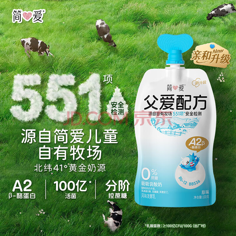 商品相册:简爱父爱配方 儿童酸奶0%蔗糖原味100g*6袋 无蔗糖宝宝酸奶早餐下午茶第1张/共5