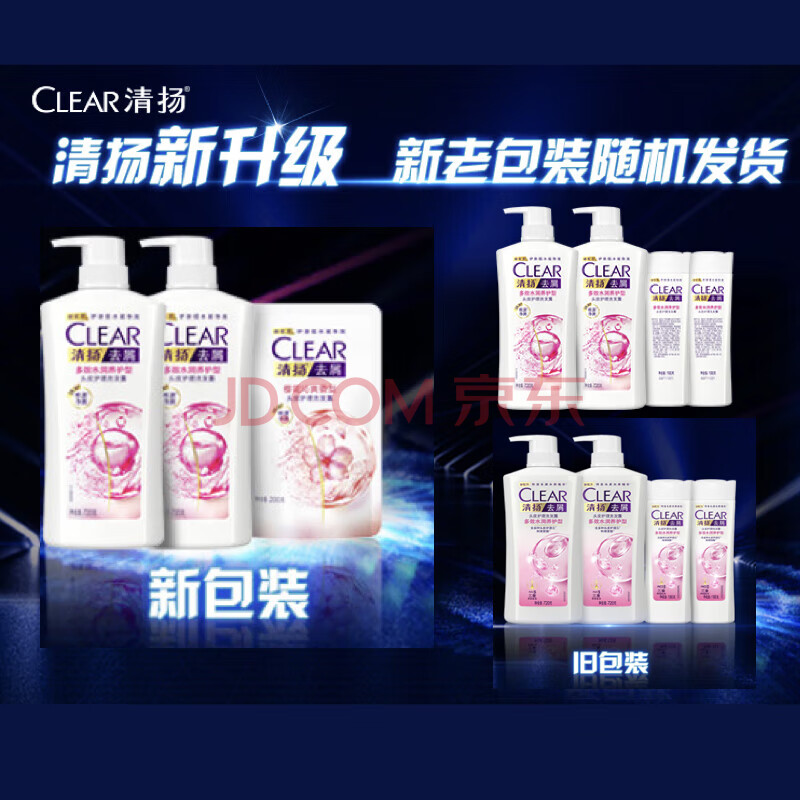 商品相册:清扬女士去屑洗发水 多效水润720gx2+试用装200g 玻尿酸净屑洗头膏第