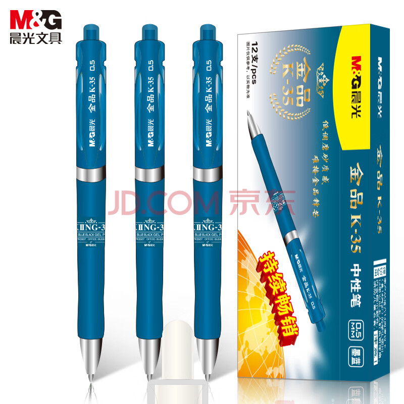 商品相册:晨光(M&G)(M&G)文具K35按动中性笔学生0.5签字笔商务子弹头水笔医生处方笔高颜值办公用品墨蓝12支/盒第
