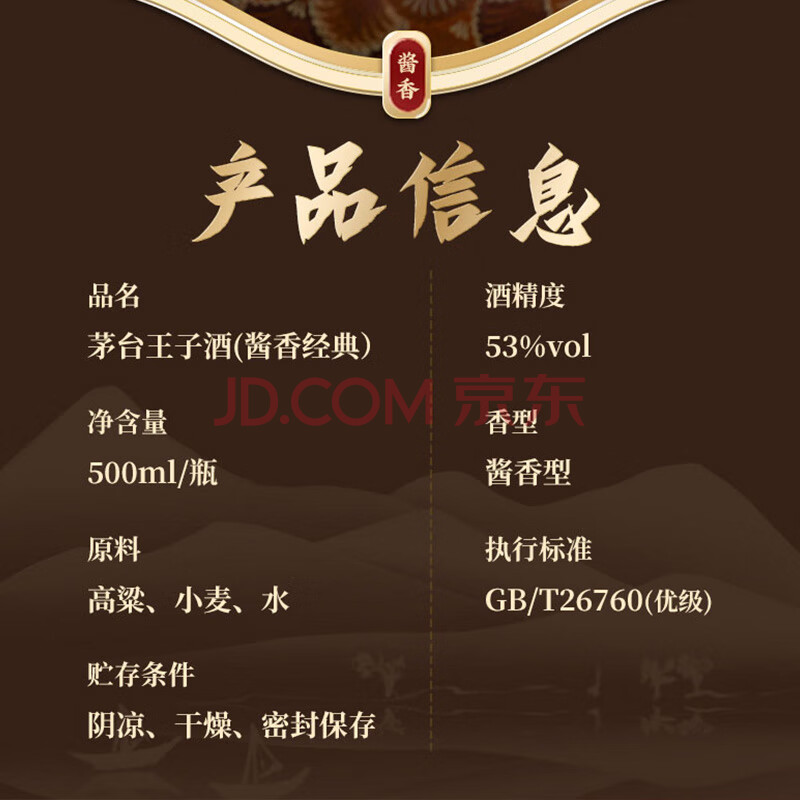 商品相册:茅台 王子酒 酱香经典 酱香型 53度 500ml 单瓶装(24-25年随机发货)第