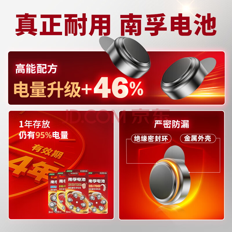 商品相册:南孚A13/PR48纽扣电池锌空电池6粒 助听器电池第