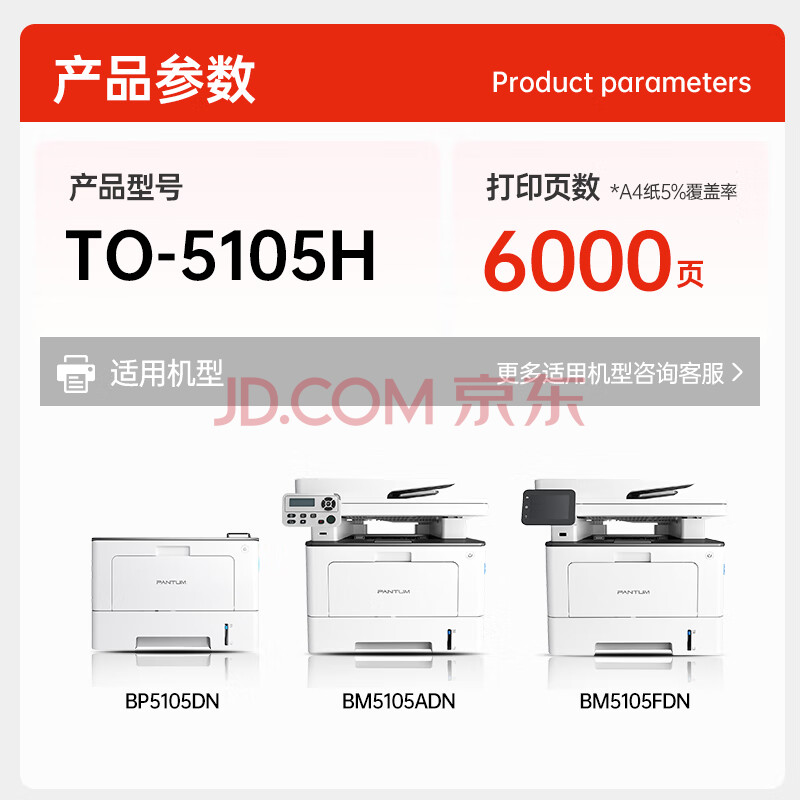 商品相册:奔图(PANTUM)TO-5105H原装高容量粉盒 适用BP5105DN/BM5105ADN/BM5105FDN打印机墨盒墨粉 碳粉盒 硒鼓第