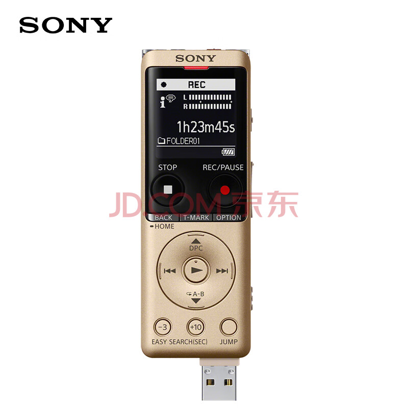 商品相册:索尼(SONY)录音笔ICD-UX570F 4GB 金色 智能降噪升级款 专业线性录音棒 商务学习采访支持内录第
