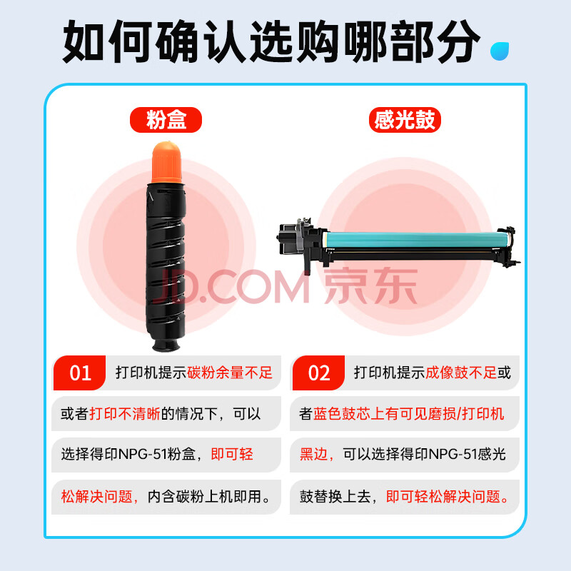 商品相册:得印兼容NPG-51粉盒黑色单支装(适用佳能2525i硒鼓Canon IR 2525/2520i/2530i)打印页数:15000第
