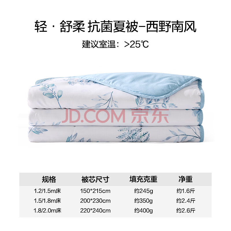 商品相册:LOVO罗莱 A类抗菌防螨纤维被夏被子空调被 2.4斤 200*230cm 蓝色第