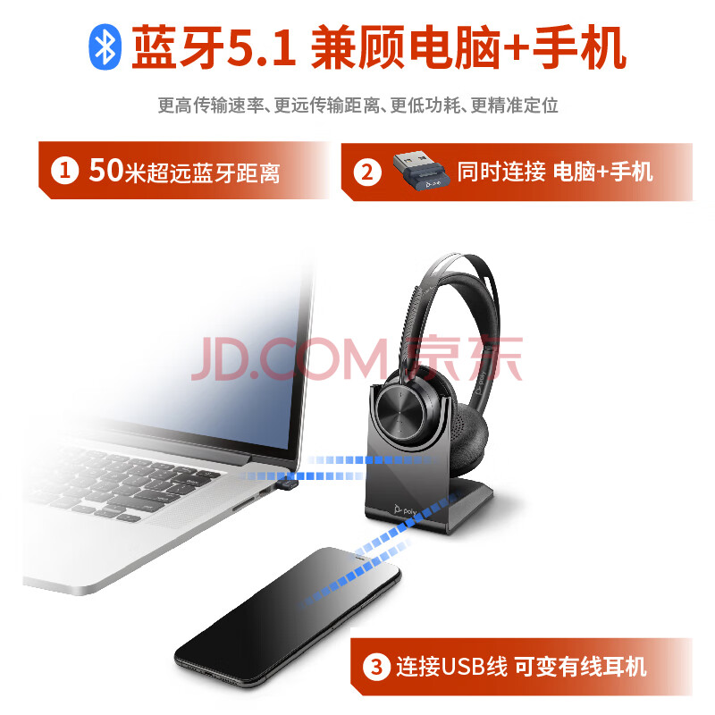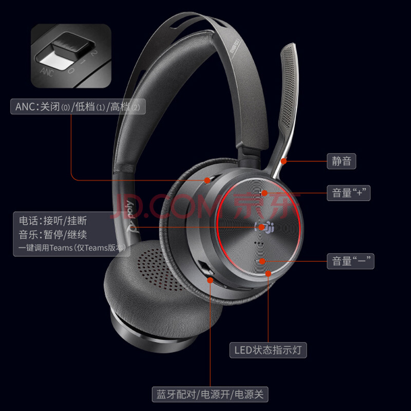 商品相册:缤特力惠普 头戴降噪无线蓝牙耳机 HIFI立体声/游戏耳机 多设备兼容 Focus 2Teams版 第