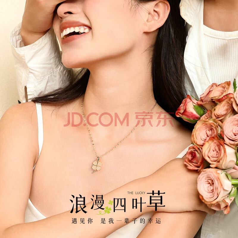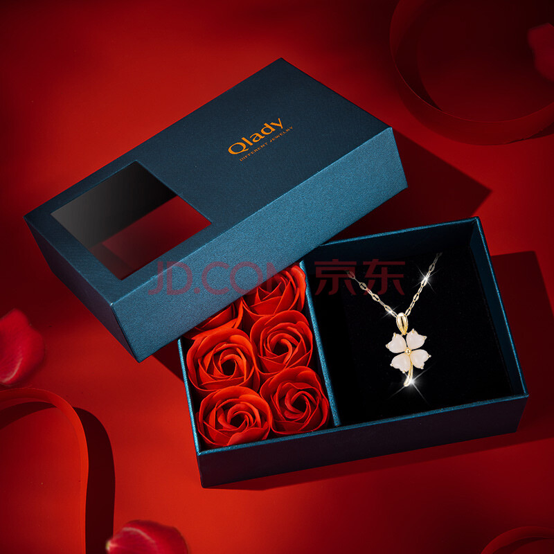 商品相册:Qlady和田玉四叶草银项链女轻奢高端银饰玉石吊坠锁骨链生日礼物送老婆第