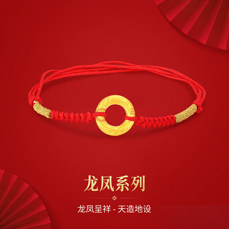 商品相册:梦金园黄金转运珠龙鳞凤尾足金平安扣3D硬金情侣手链第