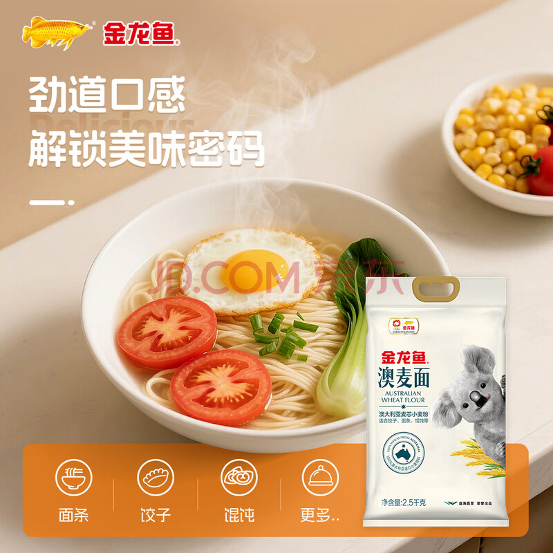 商品相册:金龙鱼 面粉 中筋粉 澳大利亚麦芯粉5斤 100%进口小麦第