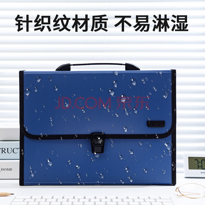 商品相册:晨光(M&G)文具A4/12格蓝色文件包 办公手提资料包风琴包 学生试卷分类收纳包 单个装AWT90959第