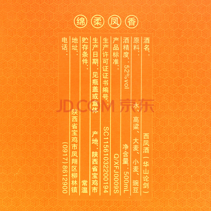 商品相册:西凤酒 华山论剑柔雅橙 52度 500ml 单瓶装 凤香型白酒第