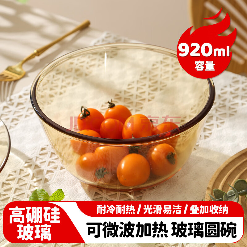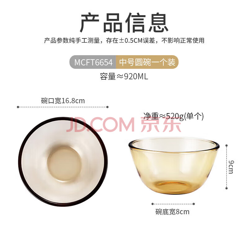 商品相册:美厨(maxcook)高硼硅玻璃碗 耐热玻璃碗汤碗泡面碗 920ml琥珀色中号MCFT6654第