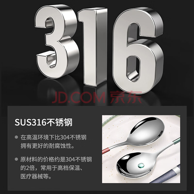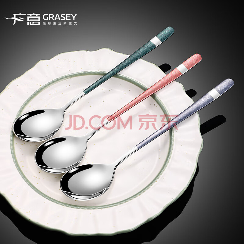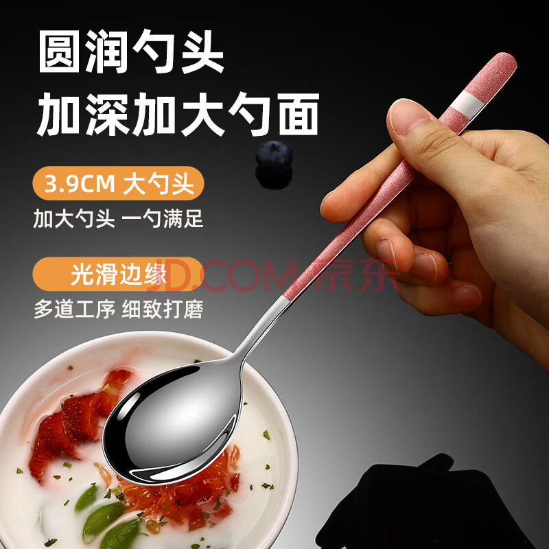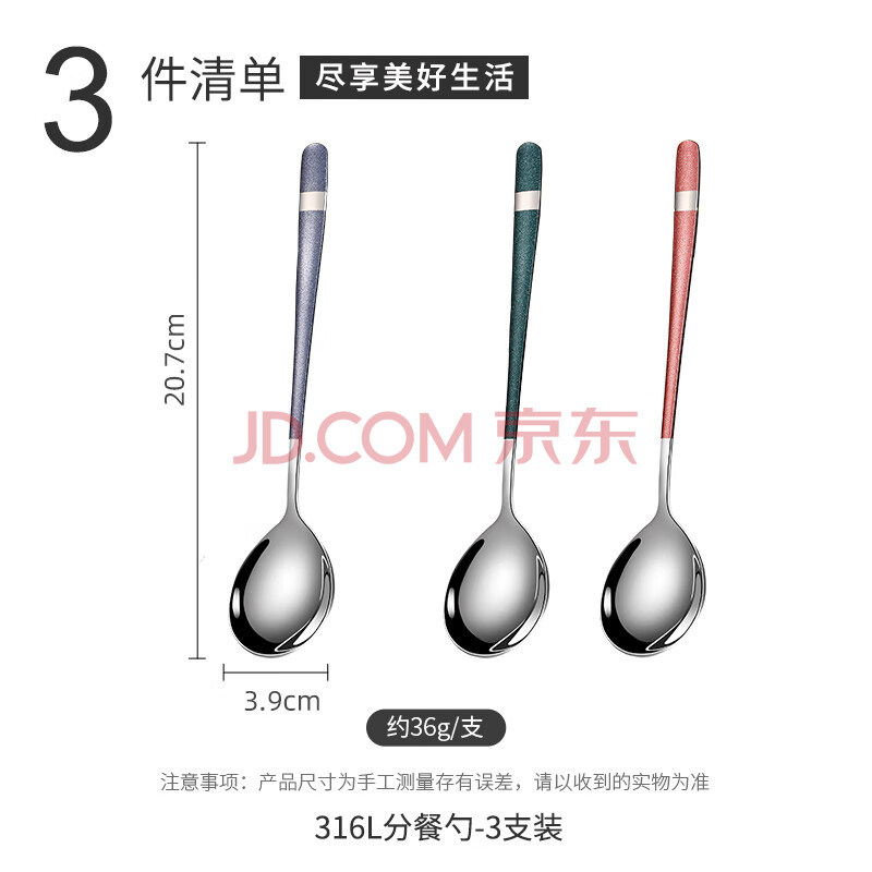 商品相册:广意316L不锈钢分餐勺 家用吃饭勺子汤勺汤匙圆底加大调羹3支装GY7869第1张/共8
